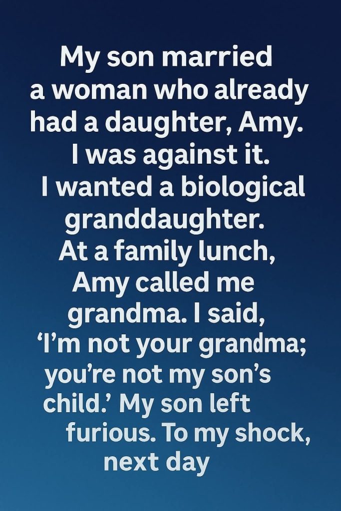 Now, years later, Amy still calls me Grandma, and I smile every time I hear it. My heart feels fuller than ever, not because I finally got the granddaughter I wanted, but because I learned that family isn’t just who we’re born to — it’s who we choose to love with all our hearts.