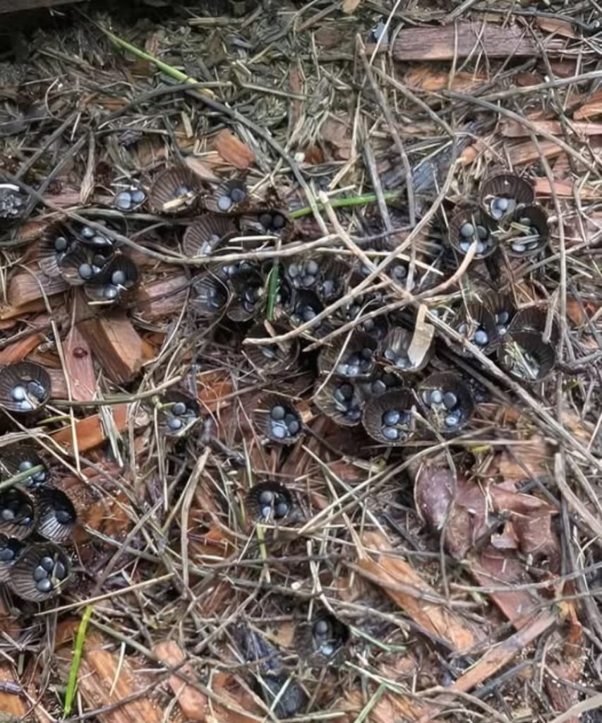 These little wonders are called Nidulariaceae—a family of fungi that mimic miniature bird nests. Each cup-like mushroom holds tiny, round capsules resembling eggs. But don’t expect any chicks to hatch: these “eggs” contain spores, the microscopic seeds that allow the fungus to reproduce.