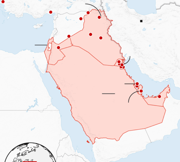 - U.S. military bases and allied positions in Gulf states, including Qatar and Bahrain;