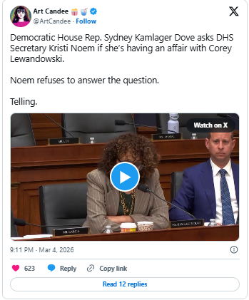 Tension in the room spiked when Rep. Sydney Kamlager‑Dove (D‑Calif.) asked Noem if she had ever had “sexual relations with Corey Lewandowski,” a top adviser affiliated with both Trump and her department.