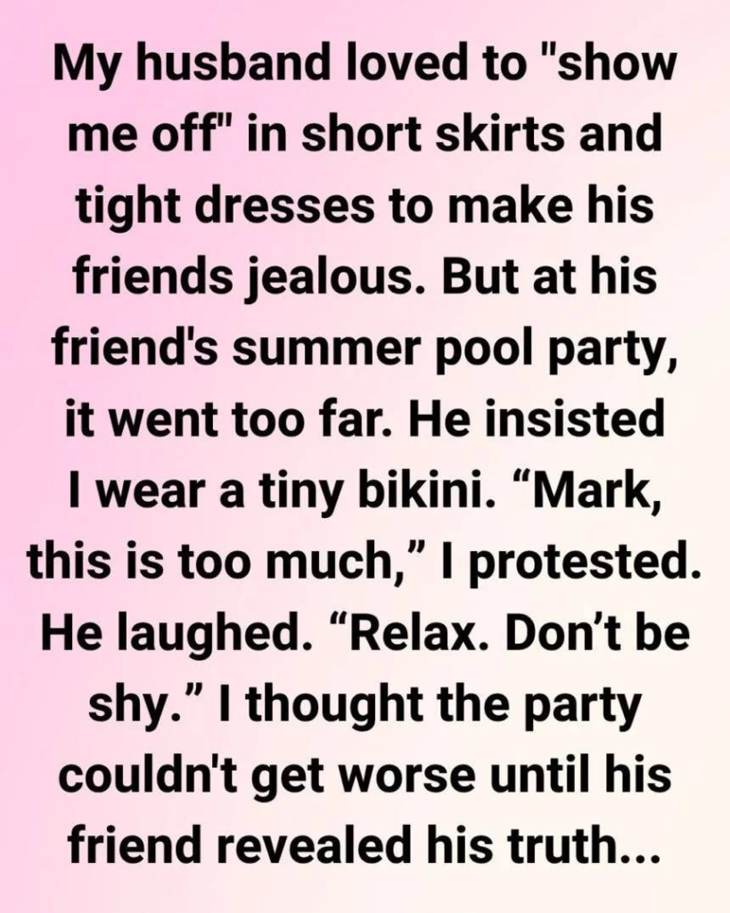 My husband, Mark, always told me he was proud of me, and for a long time, I believed him. His compliments about my looks felt like love—until I realized they weren’t admiration, they were display. He pushed me toward short skirts, tight dresses, revealing outfits, always eager to show me off in front of others. I tried to convince myself it was harmless, that maybe this was just his way of expressing pride. But deep down, it made me uncomfortable in a way I couldn’t ignore forever.