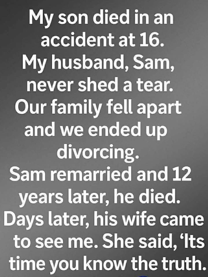Eventually, I left, thinking distance might ease the ache. Sam stayed. Life continued separately, connected only by memory. Twelve years later, he died without warning. The shock reopened emotions I thought had settled. Grief returned with unexpected force, reminding me that healing is rarely linear. After his funeral, his second wife visited me. She spoke gently about a lake he had frequented since our son’s death.