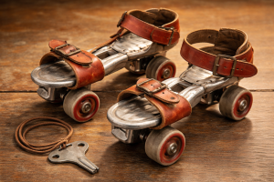 Children of the 1950s through the 1970s often encountered objects that puzzled them at first glance. Some toys looked like tools, some games looked like puzzles, and some everyday items seemed to serve no clear purpose until an adult explained. Among the most iconic of these “mysteries” was an object that looked like it belonged in a carpenter’s workshop—cold metal, leather straps, and an odd little key. For those who grew up in that era, the moment of recognition is unmistakable: these were the roller skates of their childhood.