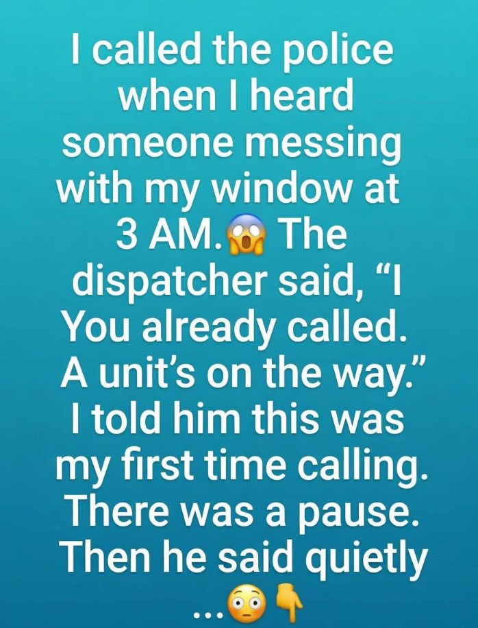 “You already called,” he said, his tone calm but certain. For a moment, I thought I had misunderstood him, just as I had initially questioned the sound at my window. “I’m sorry?” I replied, unsure of how to respond to something that didn’t align with my memory. He repeated himself, explaining that a call had come in from my number just minutes earlier, reporting the same situation—a noise near the window and a request for assistance. The words didn’t make sense. I hadn’t made any call before this one. I had been sitting in silence, debating whether or not to act, my phone untouched until just seconds ago. I explained this to him carefully, trying to keep my voice steady despite the confusion that was beginning to build. There was a brief pause on the line, the kind that feels longer than it actually is, as if he, too, was trying to understand how two versions of the same event could exist at once.